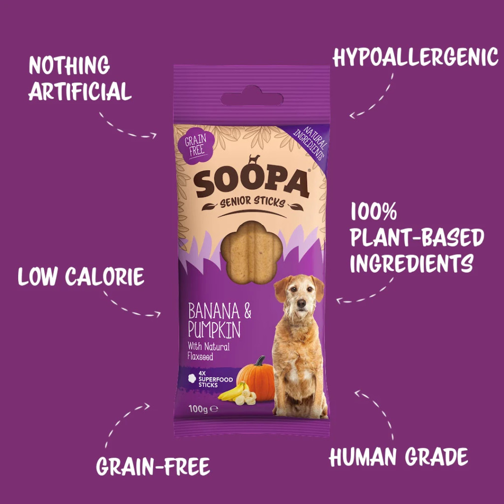 Soopa Senior Sticks - fogtisztító rágórúd idős kutyáknak Banánnal és sütőtökkel