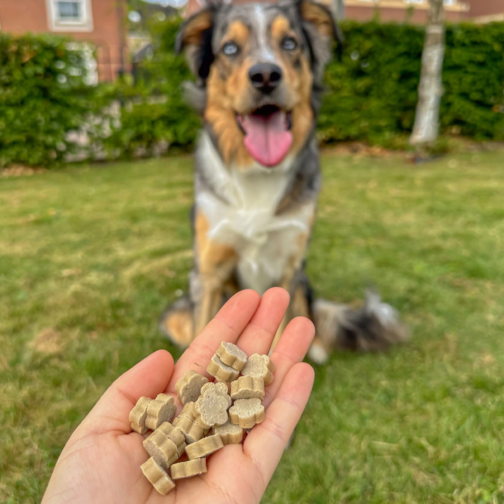 A Soopa Healthy Bites egy hipoallergén, gabonamentes jutalomfalat a rágni szerető kutyák számára. Természetes, 100%-ban emberi fogyasztásra alkalmas összetevőkből készül, segít tisztán tartani a fogakat és javítja a kutya leheletét. Tele van vitaminokkal, ásványi anyagokkal és egészségügyi előnyökkel. Egyszerű, finom, tápláló, és ami a legjobb, a kutyák IMÁDJÁK őket!